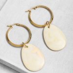 עגילי חישוק מהממים עם תליון טיפה שמנת בטקסטורת שיש עדינה. עגיל שמגיע עם אזהרת חרישה רצינית!