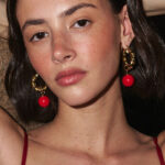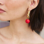 - מידות:אורך עגיל 5.5 ס”מ, קוטר חישוק 3 ס”מ , קוטר חרוז אדום 18 מ”מ