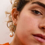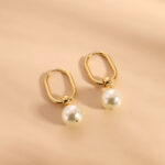 עגילי Lover פנינה – עגילים קלאסים היסטריים חישוק אובלים, בציפוי זהב עם תליון זכוכית פנינה. ניתן להסיר את התליון וללכת עם העגילים במראה נקי!