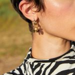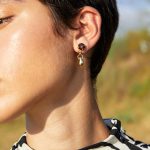 עגילי SAFARI יוניק | חום קוניאק – עגילים אסימטריים עם צ’ארמס מושלמים בגווני חום קוניאק וירוק זית.