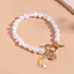 צמיד משגע של פנינים במראה גלאם, משולב עם תליון קריסטל בגימור קשת ובגוון צהבהב קייצי מושלם! הצמיד משתלב מצויין עם עוד צמידים למראה מלא שיק!