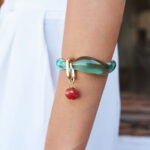 - חומרים: אקריל שקוף בגוון טורקיז, אלמנטים בציפוי זהב, אבן קרנליאן.
