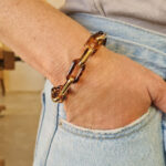 צמיד קליל ומלא נוכחות ! שילוב מושלם של לולאות מנומרות וחוליות בציפוי זהב!