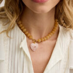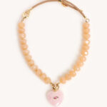 שרשרת שיקית! שרשרת משגעת מחרוזי אקריל אמורפים בגוון ניוד שילוב של תליון לב מאבן רוז קוורץ משובץ זירקון מושלם והכי כייף שגם ניתנית לענידה כשרשרת צמודה או משוחררת (ניתן להאריך אותה באופן עצמאי)