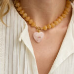 שרשרת שיקית! שרשרת משגעת מחרוזי אקריל אמורפים בגוון ניוד שילוב של תליון לב מאבן רוז קוורץ משובץ זירקון מושלם והכי כייף שגם ניתנית לענידה כשרשרת צמודה או משוחררת (ניתן להאריך אותה באופן עצמאי) אבני חן טבעיות מאופן טבעם אינן זהות ולכל אחת את הייחודיות שלה ולכן ייתכנו שינויים קלים בגוון צבע ובטקסטורות של האבנים בתכשיט זה