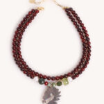 שרשרת שתי שכבות סופר מיוחדת בגוון בורדו! עם תליון סוס צדף מהמם!