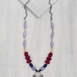 - חומרים: שרשרת ואלמנטים בציפוי כסף, חרוזי אקריל, חרוזי זכוכית, שיבוץ פורמייקה