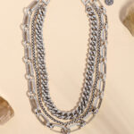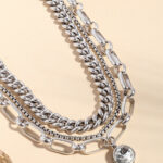 שרשרת משגעת ! מורכבת משלוש שכבות של שרשראות בציפוי כסף ותליון מרכזי מלא נוכחות משובץ קריסטל!