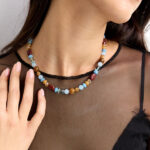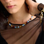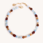 שרשרת משגעת מיקס של חרוזים אבני חן, זכוכיות ואקריל בגווני תכלת וחומים ומתאימה ללוק חגיגי או יום יומי, מעולה לשילוב עם עוד שרשראות למראה שכבות!