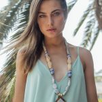 שרשרת ייחודית בסגנון בוהו וגווני פסטל ובשילוב תליון עץ זית בעבודת יד.