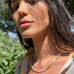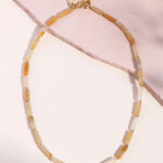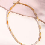 שרשרת קלה ועדינה עשויה כולה מאבני ג’ייד בצורת צינורות ובינהן חרוזים קטנים בציפוי זהב