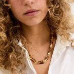 שרשרת היסטרית קלילה ומלאת נוכחות!!! לולאות אקריל עם פרינט (הדפס) מנומר, משולבות עם לולאות בראס מצופות זהב 14 קארט