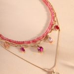 שרשרת היסטרית שהיא פשוט וואו! 3 שכבות של שרשראות, ציפוי זהב, חרוזי אבני ג’ייד מולטיקאט בגוון רובי משגע ותליוני צ’ארמס בגווני ורוד, רובי ופוקסיה ולסיום תליון צ’ארם לב מתוק בציפוי זהב