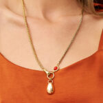 שרשרת סופר שיקית מושלמת להשתלב גם עם שרשרת קצרה, תליון מיוחד של אלמנטים בציפוי זהב ושיבוץ אבן קרנליאן הידועה בשם: “אבן-השמחה” בזכות יכולתה להכניס שמחה היא מסוגלת לאזן רגשות סוערים ולהמירם לטובים יותר! אבני חן ופנינים טבעיות מאופן טבעם אינן זהות ולכל אחת את הייחודיות שלה ולכן ייתכנו שינויים קלים בגוון צבע ובטקסטורות של האבנים בתכשיט זה.