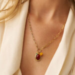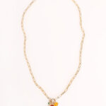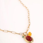 שרשרת עדינה במראה וינטג’י עם תליון צ’ארם משובץ אבן חן קרנליאן הידועה בשם: “אבן-השמחה”