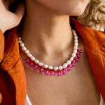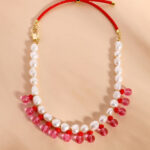 שרשרת פנינים היסטרית וסופר שיקית שילוב של פנינים, חרוזי קריסטל אדומים וחרוזי זכוכית בגוון פוקסיה משגע ! ניתן לענוד אותה כשרשרת או כקולר צמוד. ניתן להגדיל ולהקטין עצמאית בעזרת השרוכים.