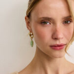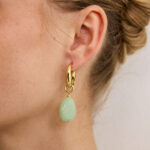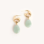 שילוב של מתלה עגיל מיוחד מצופה זהב עם תליון טיפת אקריל אמורפית בגוון ירקרק אקווה משגע!