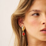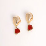 עגילים מיוחדים בצורה אמורפית, יושבים מושלם על האוזן שילוב מושלם של זהב עם נגיעה של צבע אדום כתמתם!